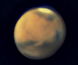 Mars Mars is the most explored world beyond the Moon, and a fascinating target for amateur observers. It appears as a distinctly orange-red star in the night sky — its blood-red colour historically giving it an association with war. Mars comes closest to Earth roughly every 26 months, and the distance at closest approach varies considerably, with some oppositions bringing Mars much nearer than others. Through a telescope, the polar ice caps, dark surface markings and occasional planet-wide dust storms are all visible under good conditions. Like Earth, Mars has distinct seasons and a thin atmosphere — thin enough to be breathed only in imagination, but capable of whipping up enormous dust storms that can obscure the surface for weeks at a time. |